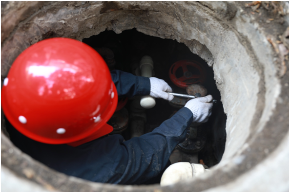 大暑節(jié)氣,天氣有些悶熱,最高氣溫超過36度。位于薈萃北區(qū)的一棟樓前,運行經(jīng)營一分公司兩名穿著工作服的檢修人員揭開檢查井蓋進行通風換氣,系緊褲腳、戴好安全帽……做好下井準備工作后,一點一點把身子探進檢查井,工作人員在狹窄的檢查井中對到樓鎖閉閥門進行維護保養(yǎng)。“機油槍遞給我”,狹窄的井口內(nèi),李鵬蜷縮其中,抬起掛滿汗水的臉喊道。檢查井深約3米,內(nèi)部空間狹小,最多能容納2人,在井里作業(yè),隨時會發(fā)生磕碰。在有限的作業(yè)空間內(nèi),檢修員無法伸直手臂,只能依靠腕力打開鎖頭,查看閥門狀態(tài),閥門開關(guān)是否老化損壞,管道盤根是否泄漏,接著用機油槍注入機油潤滑并抹油,扭動活動閥門,進行回絲、鎖頭,一步一步對鎖閉閥管道進行保養(yǎng)并清理井室內(nèi)雜物……